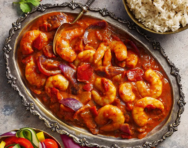 The dish typically consists of a base of onion, garalic, ginger and spices being fried together to from a thick coating sauce.